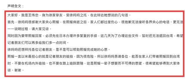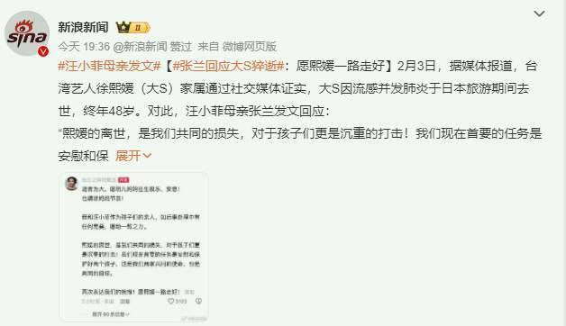 噩耗传出后,张兰发文悼念,并透露首要的任务是安慰和保护孩子,汪小菲则直接从泰国飞往中国台湾,憔悴的模样惹人心疼。大S妈妈则通过好友王伟忠分享声明,并曝光大S的最后心愿,以及长达300多字的声明。
